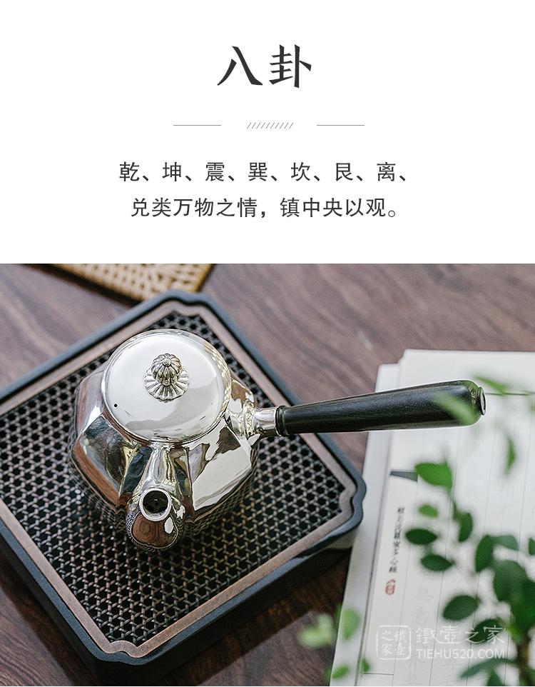 晓诚金工八棱镜镜面本色纯银横手急须 铁壶之家